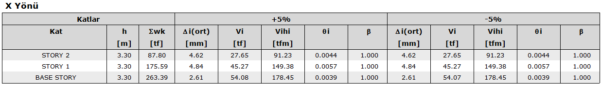 ideCAD Statik Deprem yönetmeliği raporu ikinci mertebe etkileri bölümünde hesap sonuçları verilmektedir.