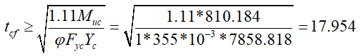 Kiriş başlık kalınlığı, tbf | 14.6 mm | 14≤tbf≤35 |