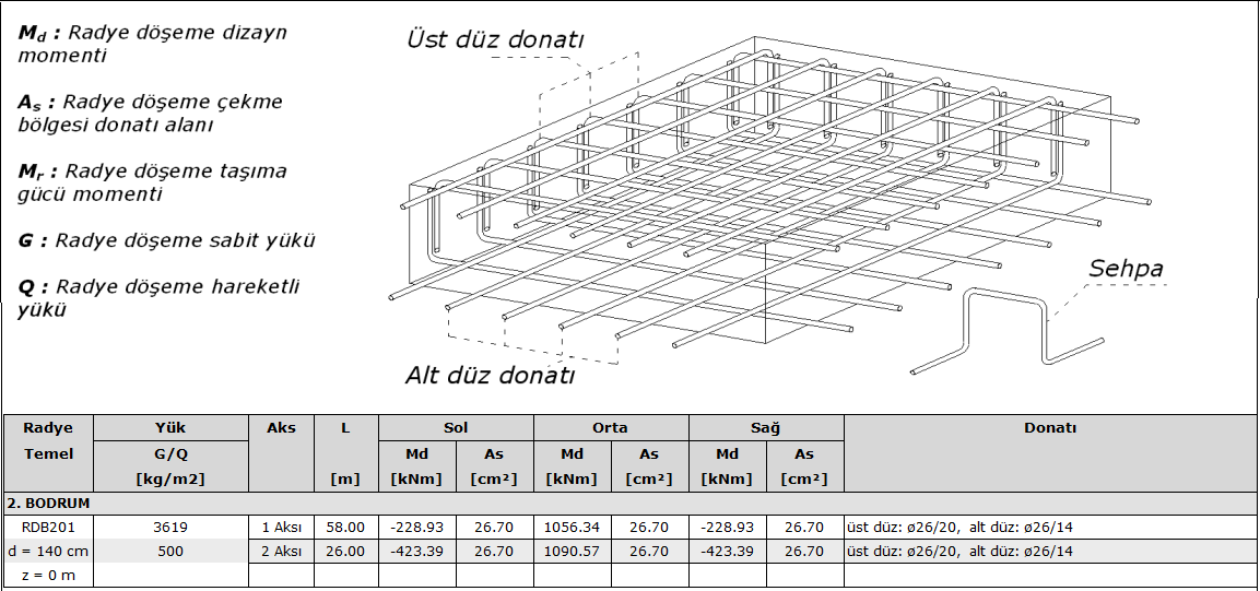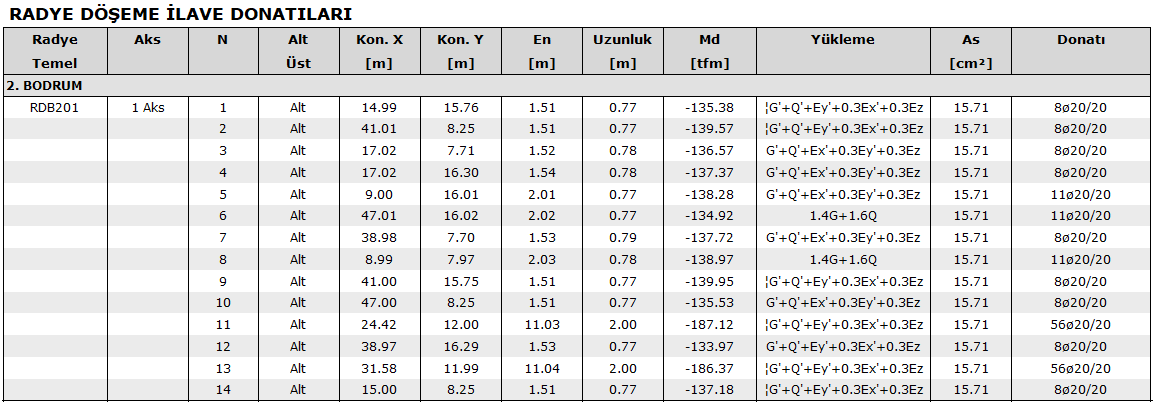 - Radye temel raporunda yerleşimi yapılan ilave donatılar ayrıca raporlanmaktadır.