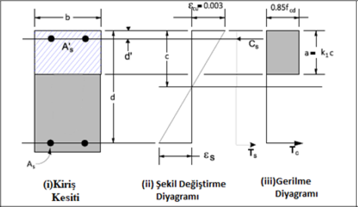 - Temelin TS 500’e göre önce minimum eğilme donatısı ve kesme donatısı belirlenecektir. Bu donatılarla elde edilen eleman dayanımları,hesaptan elde edilen tasarım kuvvetleriyle karşılaştırılacaktır. Dayanım değerlerinin tasarım kuvvetlerinden daha küçük olması durumunda öngörülen donatılar revize edilerek gerekli eleman dayanımı elde edilecektir.