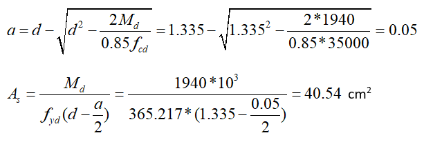 Toplam donatı Φ26/20 + Φ20/20=42.26 cm2
