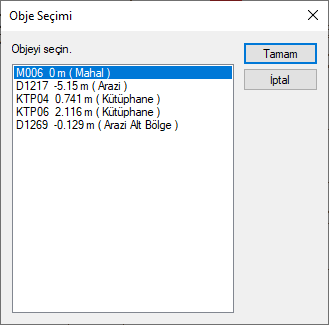 Otomatik Kot Ayarla özelliği ile ideCAD kütüphane objesinin oluşturulacağı yerde bulunun objeyi görür. Obje kotunu otomatik algılar ve kütüphaneyi üzerine yerleştirir. Aynı yerde birden fazla obje olması durumunda obje seçimi yapılır.
