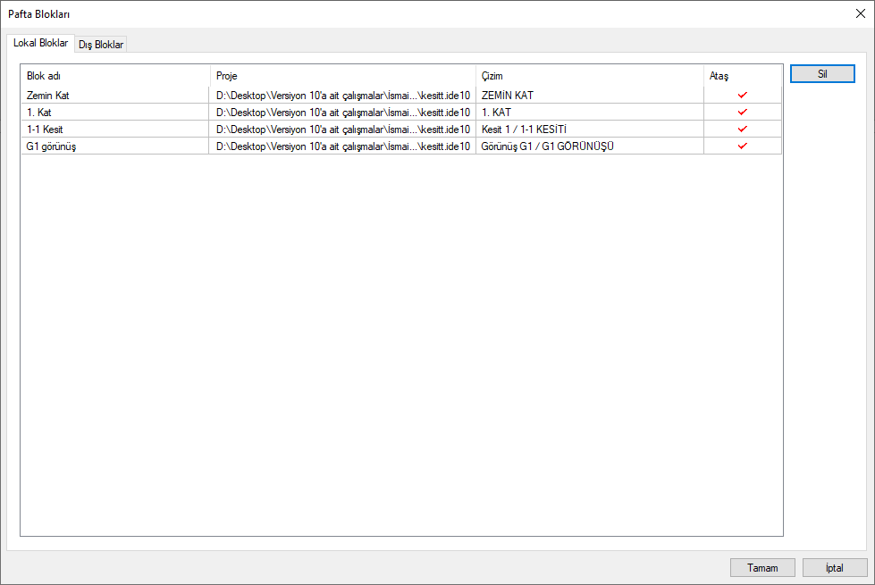 Pafta blokları diyaloğundan 1. katı seçip tamam butonunu tıklayın.