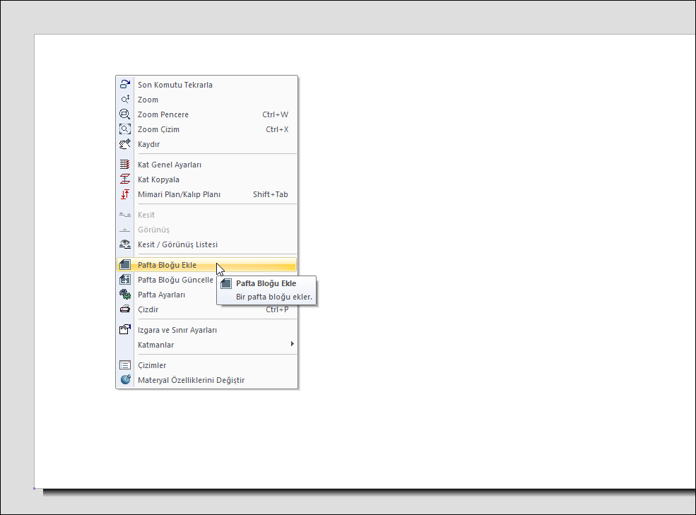 Açılan menüden Pafta bloğu ekle satırını tıklayın.