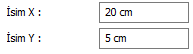 Yükseklik ![]() Ad ve boyut yazılarının yüksekliği girilir. |