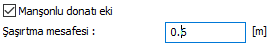 Manşonlu donatı eki ![]() Perdede bindirmeli ek yerine maşonlu donatı eki yapılması istenirse bu seçenek aktif hale getirilir. Şaşırtma mesafesi kutucuğuna maşon uygulaması için şaşırtma değeri girilir. |