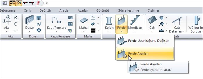 Ribbon menüde Giriş sekmesi Betonarme başlığı altından da ulaşabilirsiniz.