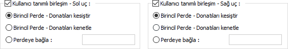 Sol perdeye ankraj yap/Sağ perdeye ankraj yap ![]() Üç ve daha fazla perdenin birleştiği durumda perdelerin hangi perdeye ankraj olacağı kullanıcı tanımlı olarak belirlenebilir. P08 Perdesinin "Sol perdeye ankraj yap" parametresi kullanıcı tanımlı olarak değiştirilerek aşağıdaki şekillerde çizim alınabilir. ![]() ![]() ![]() ![]() |