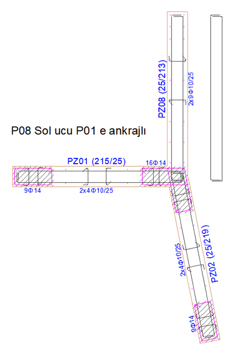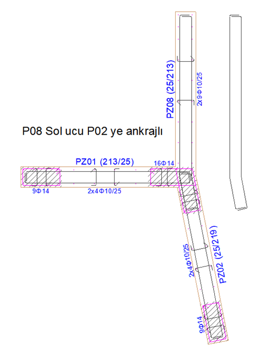 Kullanıcı tanımlı birleşim ![]() Perdelerin bağlanma durumlarına göre, perdelerin arasındaki açı ve perde tipine (bodrum veya sistem perdesi) göre program otomatik olarak en uygun çizimi otomatik oluşturur. Bu çizimlere istenilirse kullanıcı tarafından müdahale edebilir. İki ve daha fazla perdenin birleştiği durumda iki perde kullanıcı tanımlı olarak öncelikli olarak belirlenebilir. |
