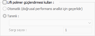 Lifli polimer güçlendirmesi kullan ![]() Lifli polimer ile güçlendirilecek perdelerde Lifli polimer özellikleri bu seçenek işaretlenerek yapılır. Lifli Polimer Kütüphanesi 'nde tanımlanmış olan lifli polimerlerden bir tanesi ve sargı sayısı seçilerek güçlendirme yapılır. |