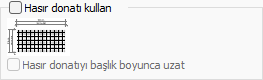 Hasır donatı kullan ![]() Hasıe donatı kullanımı aktif hale getirilir. İstenirse hasır donatı başlık boyunca uzatılır. |
