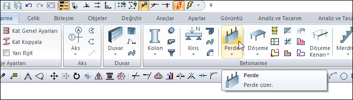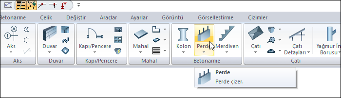 Ribbon menüde Giriş sekmesi Betonarme konu başlığı altından ulaşabilirsiniz.