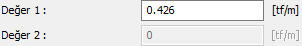 | Değer 1 , Değer 2 (V1, V2)  Yükün çalışan birimdeki değerini girin. Mevcut yükün özelliklerine bakıyorsanız, o yük değerini görürsünüz. Duruma göre değiştirebilirsiniz. |