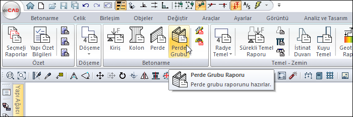 Raporlar sekmesi Betonarme başlığı altından ulaşabilirsiniz.