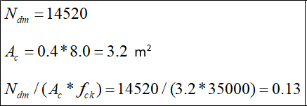 Deprem yükleri hesaplanmadan G+Q düşey yükleri altında oluşan eksenel gerilmelerin, karakteristik beton basınç dayanımına oranı hesaplanacaktır. Bu hesapta perde kalınlığı 40 cm kabul edilmiştir.