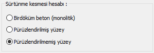 Sürtünme kesmesi hesabı ![]() Sürtünme kesmesi hesabı için kesme - sürtünme katsayısı değeri, değişik durumlar için verilen tablodan seçilir. Birdöküm beton(monolotik) = 1.4 Pürüzlendirilmiş yüzey = 1.0 Pürüzlendirilmemiş yüzey = 0.6 |