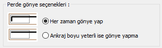 Max. enine donatı aralığı ![]() Perdeye konulacak etriyenin aralığı(s) bu parametrede belirtilen değerden fazla olmayacak şekilde seçilir. |