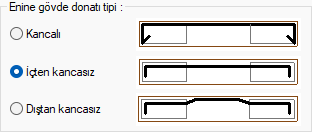 Enine gövde donatı tipi ![]() Perde açılımlarında enine donatı çizilirken hangi tipin kullanılacağını seçilir. Kullanmak istediğiniz seçeneği işaretleyiniz. |