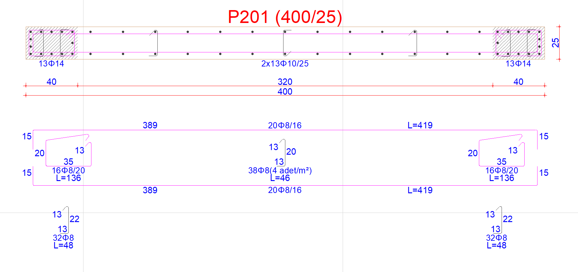 Kritik perde yüksekliği boyunca TBDY Bölüm 7.6.5 'e uygun şekilde oluşturulmuş perde çizimi örneği aşağıdaki resimde gösterilmiştir.