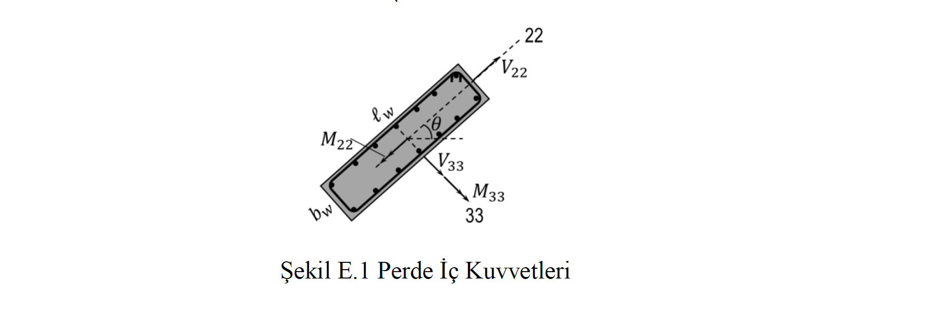 Perde kesme kapasitesi bileşenleri V22r , V33r RYTEİE E.2 'de belirtildiği şekilde tanımlanır. Ve kesme kuvvetine maruz kalan perdeler için perde kesme kapasitesi (V22r , V33r) Denklem E.2 ’e göre hesaplanır.