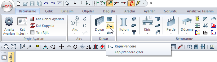Ribbon menü betonarme sekmesi Betonarme başlığından Perde Ayarları ikonuna tıklayın.