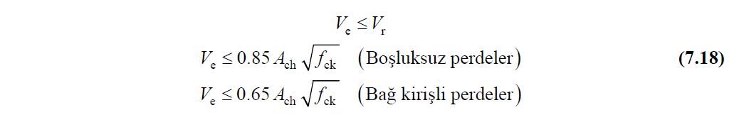 Perdelerin TBDY 7.6.6.3 ile bulunan Tasarım Kesme Kuvveti, Ve , TBDY Denklem 7.18 ile verilen koşulları sağlamak durumundadır.