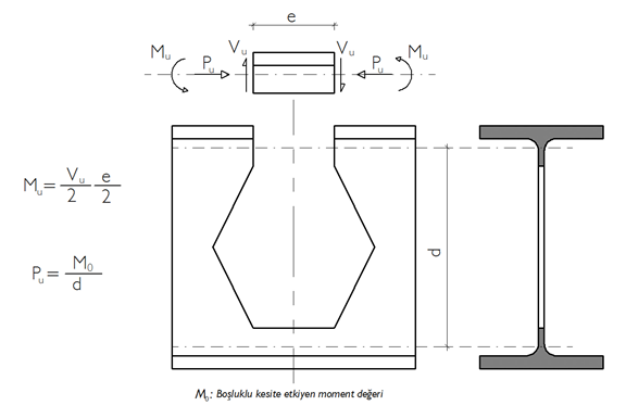 Çelik petek kirişlerin dayanımı aşağıda belirtilen koşullara göre hesaplanır.