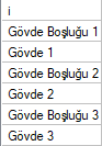 i ![]() Petek kirişte yer alan gövde ve gövde boşlukları listelenir. |