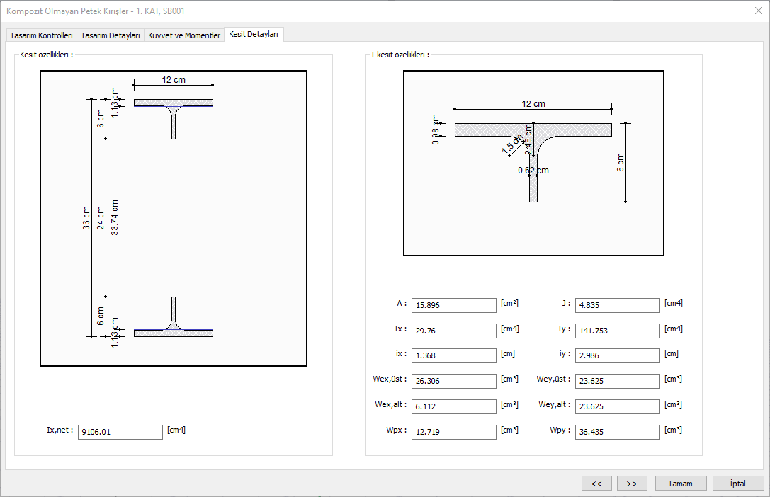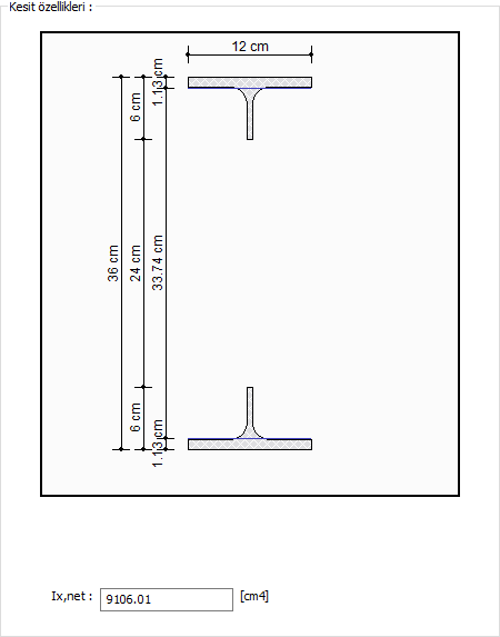 Kesit özellikleri ![]() Ix,net: x yönündeki net atalet momentini gösterir. |