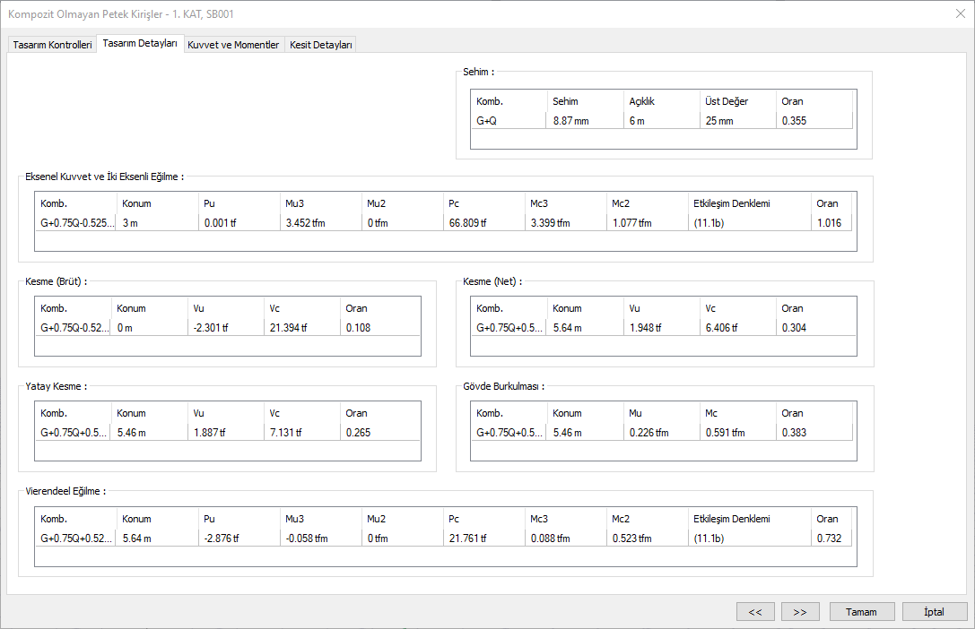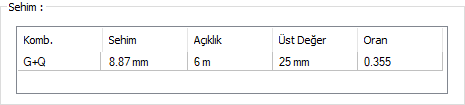 Sehim ![]() Komb.: En elverişsiz kesit kuvvetlerini oluşturan kombinasyondur. |