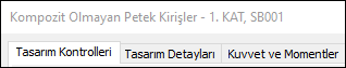 Petek kiriş tasarım sonuçları ve petek kirişlere ilişkin yetersizlik durumları Kompozit Olmayan Petek Kirişler diyaloğunda gösterilir. Kompozit Olmayan Petek Kirişler diyaloğunda brüt ve net alanda kesme, gövde burkulması, vierendeel kontrolleri ile birlikte iç kuvvet sonuçları ve net atalet momenti hesabı da verilir.