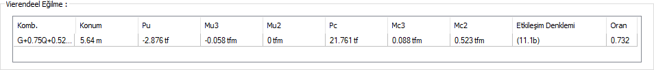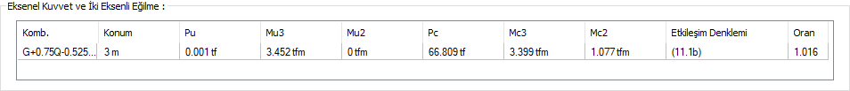 Eksenel kuvvet ve iki eksenli eğilme ![]() Komb.: En elverişsiz kesit kuvvetlerini oluşturan kombinasyondur. |