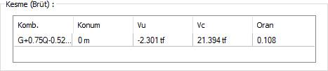 Kesme (Brüt) ![]() Komb.: En elverişsiz kesit kuvvetlerini oluşturan kombinasyondur. |