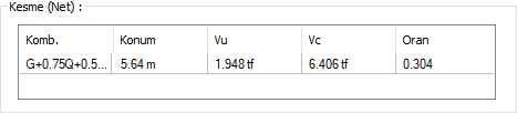 Kesme (Net) ![]() Komb.: En elverişsiz kesit kuvvetlerini oluşturan kombinasyondur. |