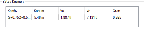 Yatay kesme ![]() Komb.: En elverişsiz kesit kuvvetlerini oluşturan kombinasyondur. |