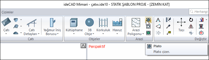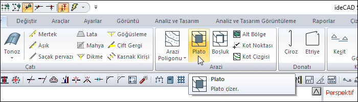 Ribbon menü Objeler sekmesi Arazi başlığı altından ulaşabilirsiniz.