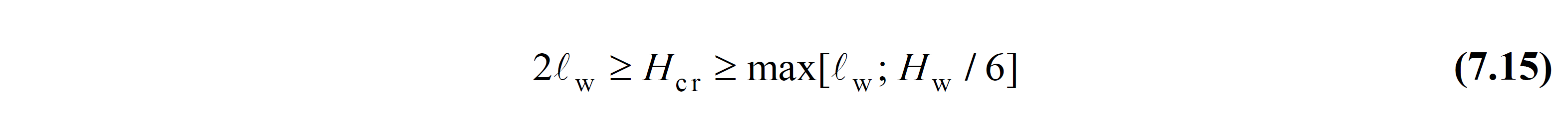 7.6.2.2 – Temel üstünden veya perdenin plandaki uzunluğunun %20 ’den daha fazla küçüldüğü seviyeden itibaren kritik perde yüksekliği, 2lw değerini aşmamak üzere, Denk.(7.15) ’de verilen koşulların elverişsiz olanını sağlayacak biçimde belirlenecektir.
