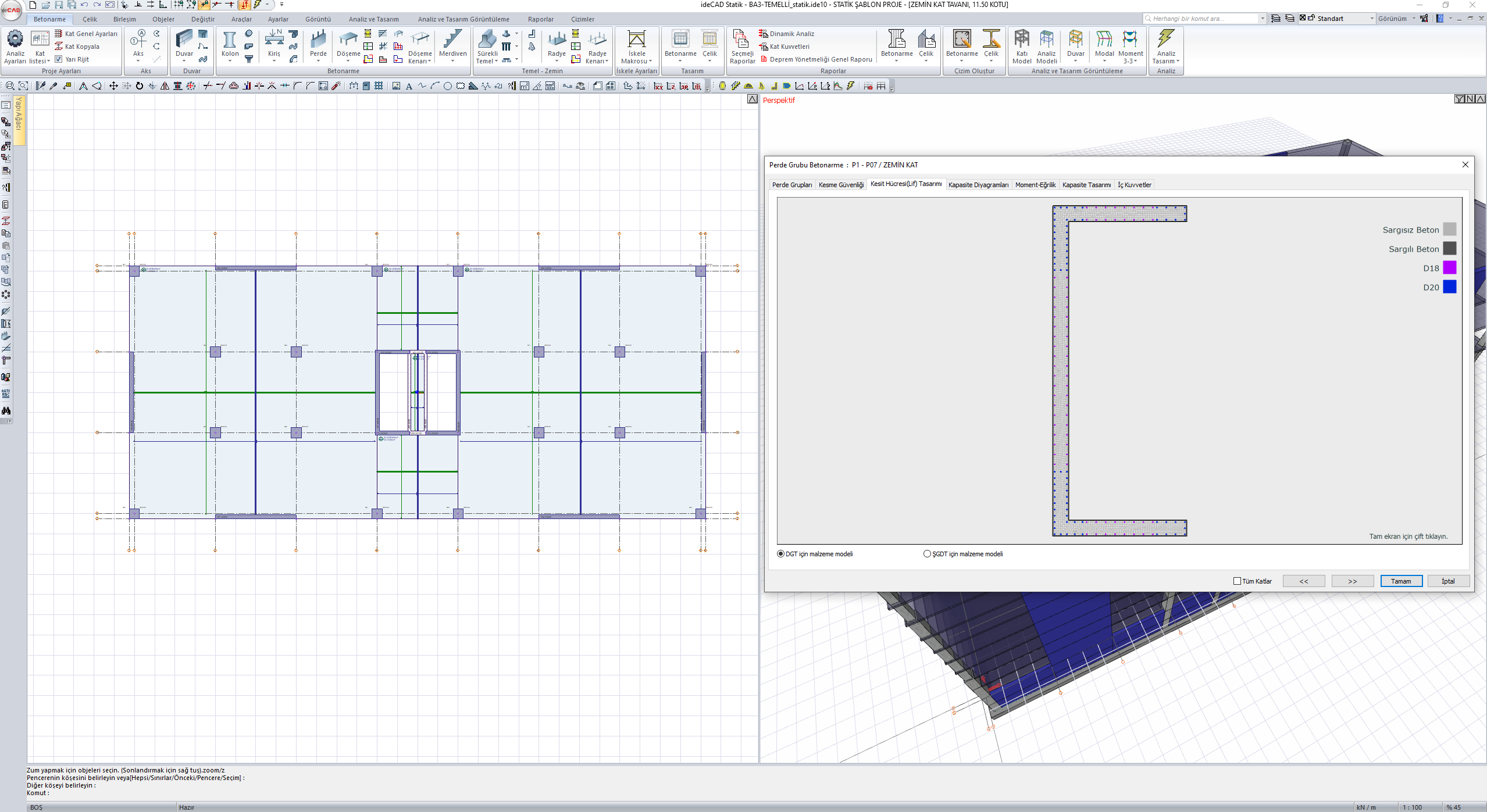 Enkesit şekli I, T, L, U veya C olan betonarme perdelerde, her bir doğrultuda en az bir perde kolunun, kesitteki uzunluğunun kalınlığına oranı en az 6 (altı) olmalıdır. Aksi durumda, taşıyıcı sistem elemanı o doğrultuda perde olarak sayılmayacaktır. Geometri kontrolünde bu koşul sağlanmamakta ise otomatik olarak uyarı verilir ve raporların ilk sayfasında hata listelenir.