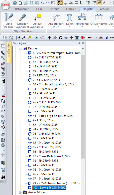 Levha kesitin oluşması ve yapı ağacına eklenmesi ![]() |