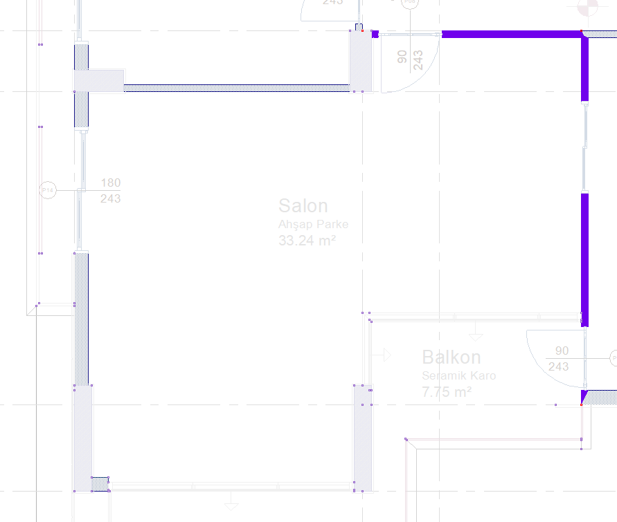 Örneğin bu modlarda süpürgelik çizmek için mahal üzerine tıklanır.