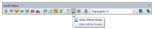 Katın Altına Hizala ile obje kotunu kat taban kotuyla aynı olacak şekilde otomatik ayarlar ve objeyi o kotta çizer. Profil objesi, kartonpiyer, süpürgelik, duvarda bordür ve kat silmesinde aktif hale gelir.