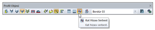 Kat Hizası Serbest ile obje kotunu verilen kot kadar alır ve objeyi o kotta çizer. Kotunu obje ayarları diyaloğundan yapabilirsiniz. Profil objesi, kartonpiyer, süpürgelik, duvarda bordür ve kat silmesinde aktif hale gelir.