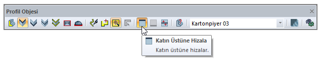 Kat Üstüne Hizala obje kotunu kat tavan kotuyla aynı olacak şekilde otomatik ayarlar ve objeyi o kotta çizer. Profil objesi, kartonpiyer, süpürgelik, duvarda bordür ve kat silmesinde aktif hale gelir.