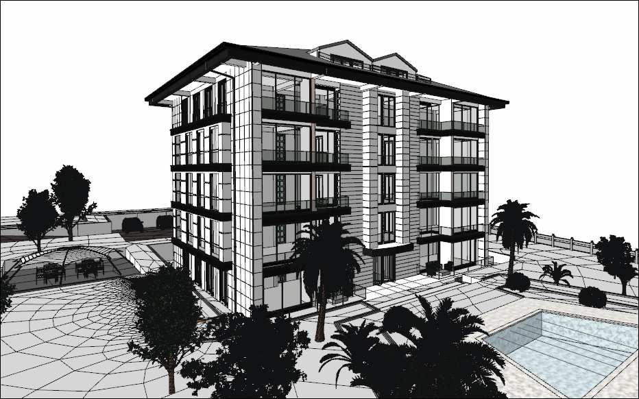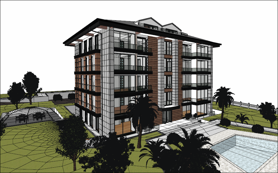 Bu diyaloğu da kapayıp perspektif ekrana geçtiğinizde modelinizi materyalleri ile göreceksiniz.