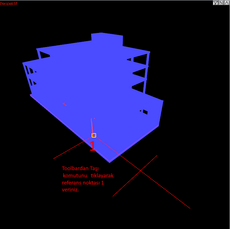 Perspektif penceresini tam ekran haline getirip tüm objeleri seçtikten sonra, taşı komutu ile tüm katları bir kerede taşıyabilirsiniz.