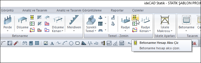 Radye temel oluşturulduktan sonra Betonarme Hesap Aksı Çiz ikonunu tıklayın.