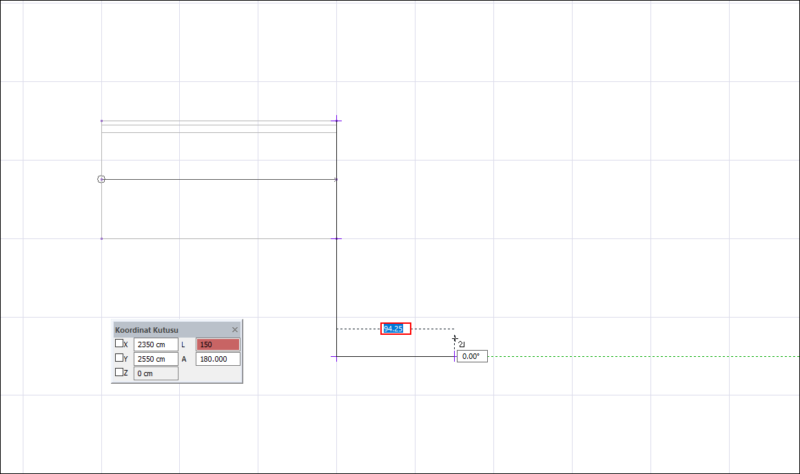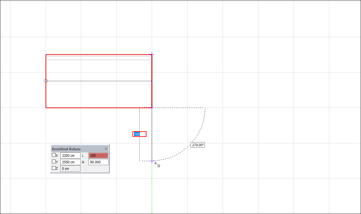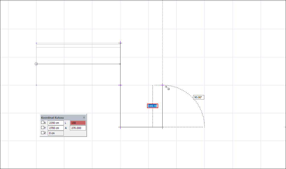 Sahanlık enini girmek için klavyeden L tuşuna basın. Uzunluk değeri olarak 150 (cm) girin ve Enter tuşuna basın.
