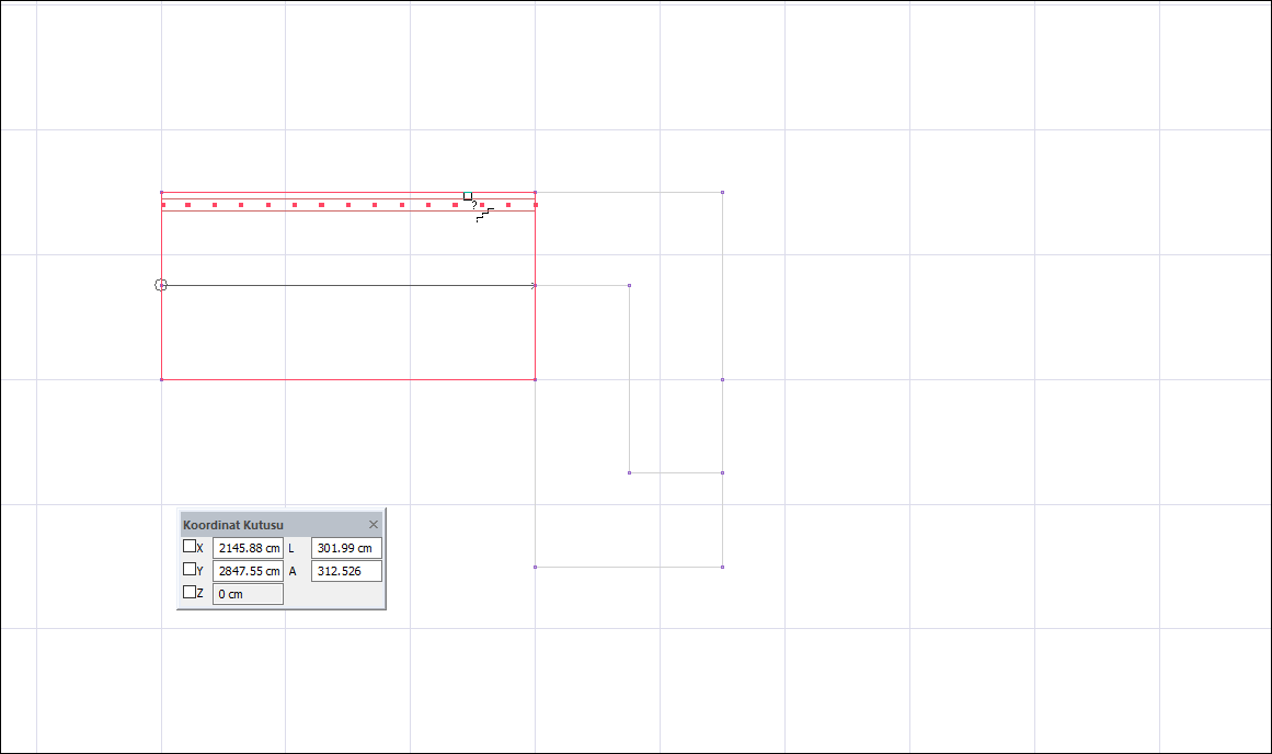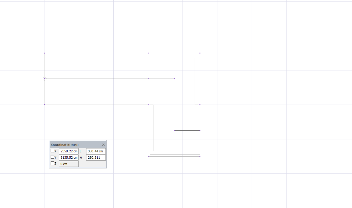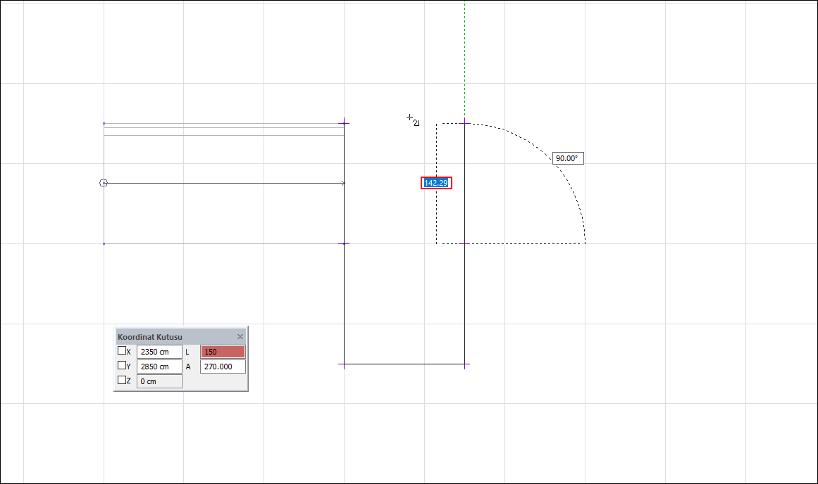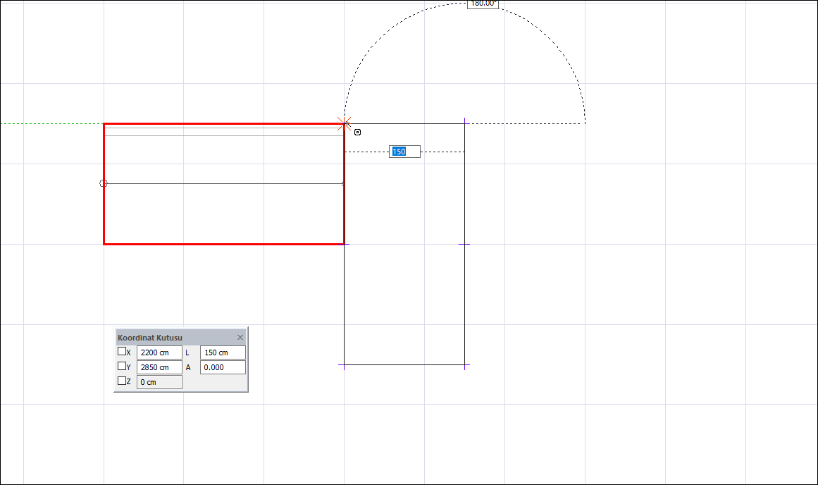 İkinci rampa alanını yerini belirlemek için klavyeden L tuşuna basın. Uzunluk değeri olarak 150 (cm) girin ve Enter tuşuna basın.