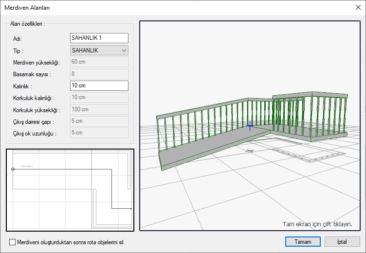 Merdiven alanları diyaloğu açılacaktır. Bu kısım sahanlık olacağından “Tip” kısmından, sahanlık seçin.