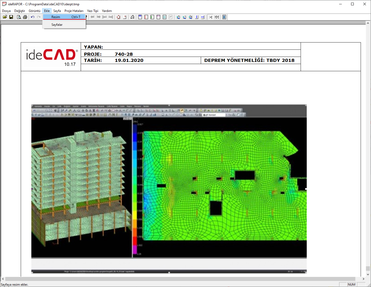 ideRapor’da Ekle menüsü altında bulunan Resim satırını tıklayınız.